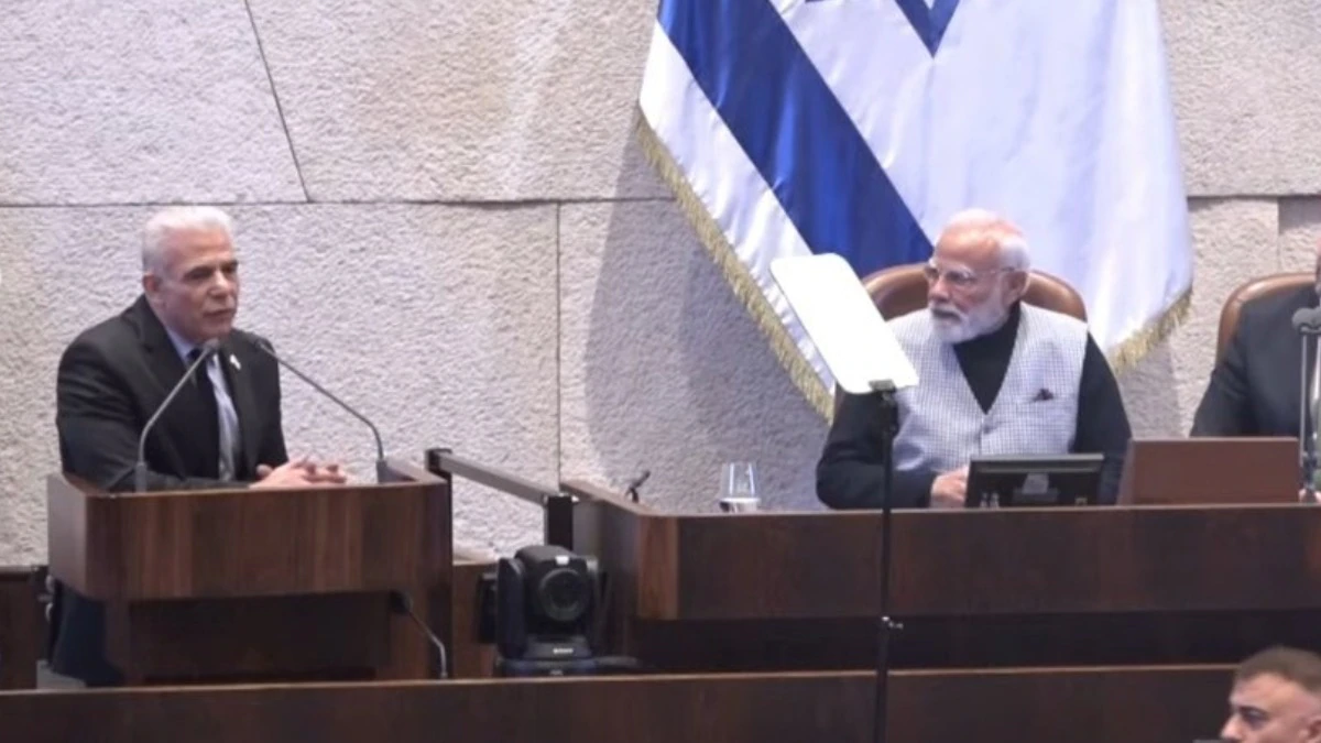 लैपिड ने मोदी से मिलाया हाथ, जताया सम्मानविपक्ष के नेता यायर लैपिड ने सदन में वापस आने के बाद विशेष रूप से पीएम मोदी से हाथ मिलाया और स्पष्ट किया, “हमारा वॉकआउट आपसे संबंधित नहीं था.” लैपिड ने आगे कहा, ‘पूरा इजरायल आपके नेतृत्व और संकट के समय में हमारे साथ खड़े रहने के लिए आपका मुरीद है. भारत और इजरायल के बीच यह गठबंधन शाश्वत (Eternal) है.’