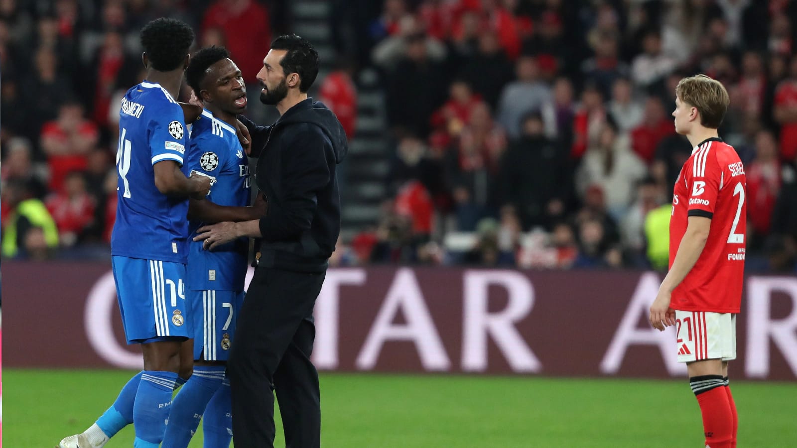 Real Madrid player Vincius Junior accused Benfica player Gianluca Prestianni of racially abusing him during the Champions League between the sides on Tuesday. During the second half, Vinicius scored a goal and celebrated, for which he was shown a yellow card for excessive celebration. Prestianni pulled Vinicius’ shirt and was seen saying something to him.